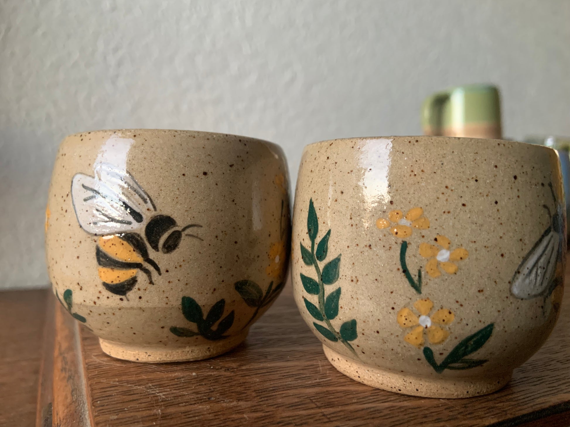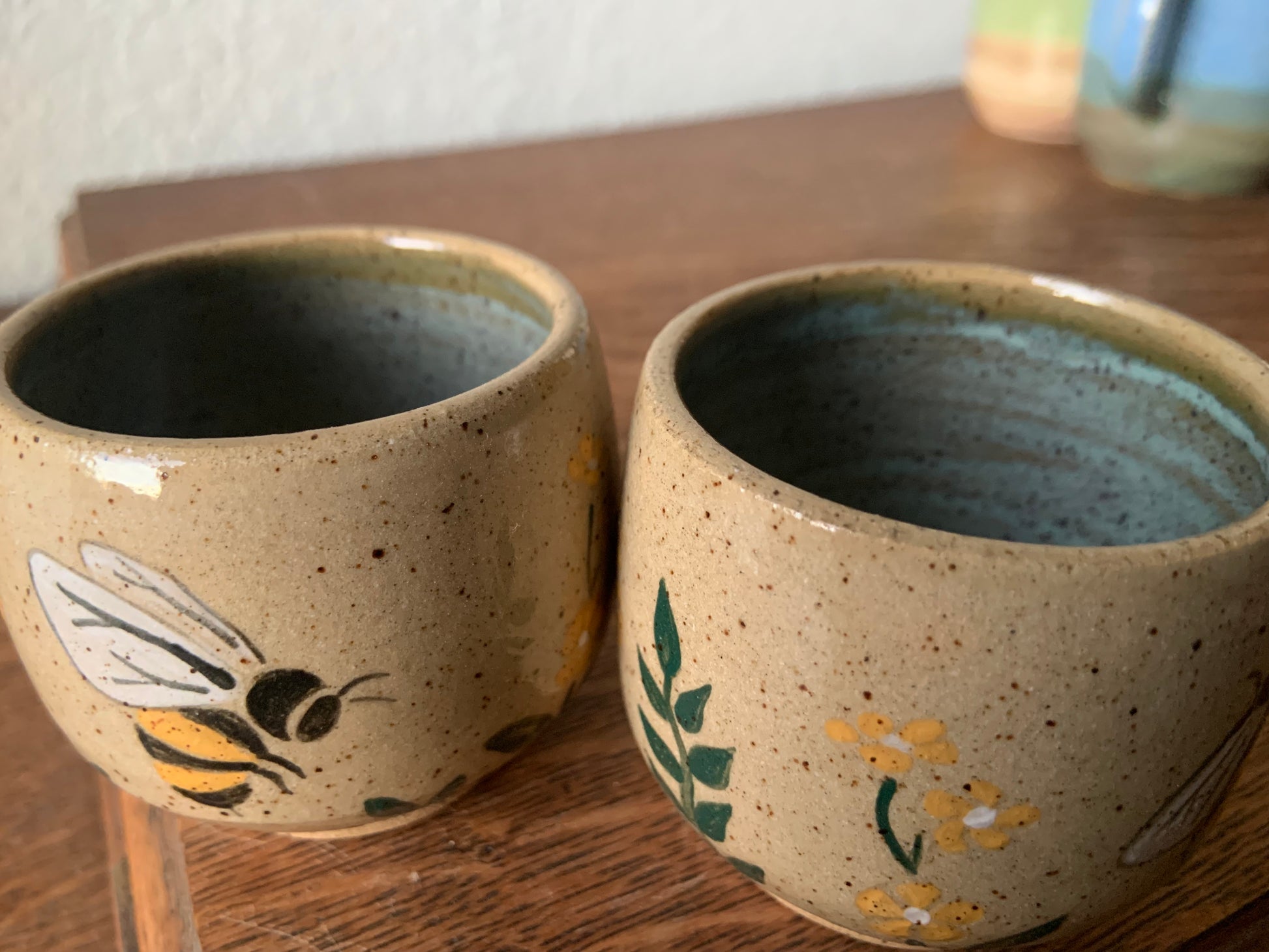 handpainted bee copitas or espresso cups. 4oz.