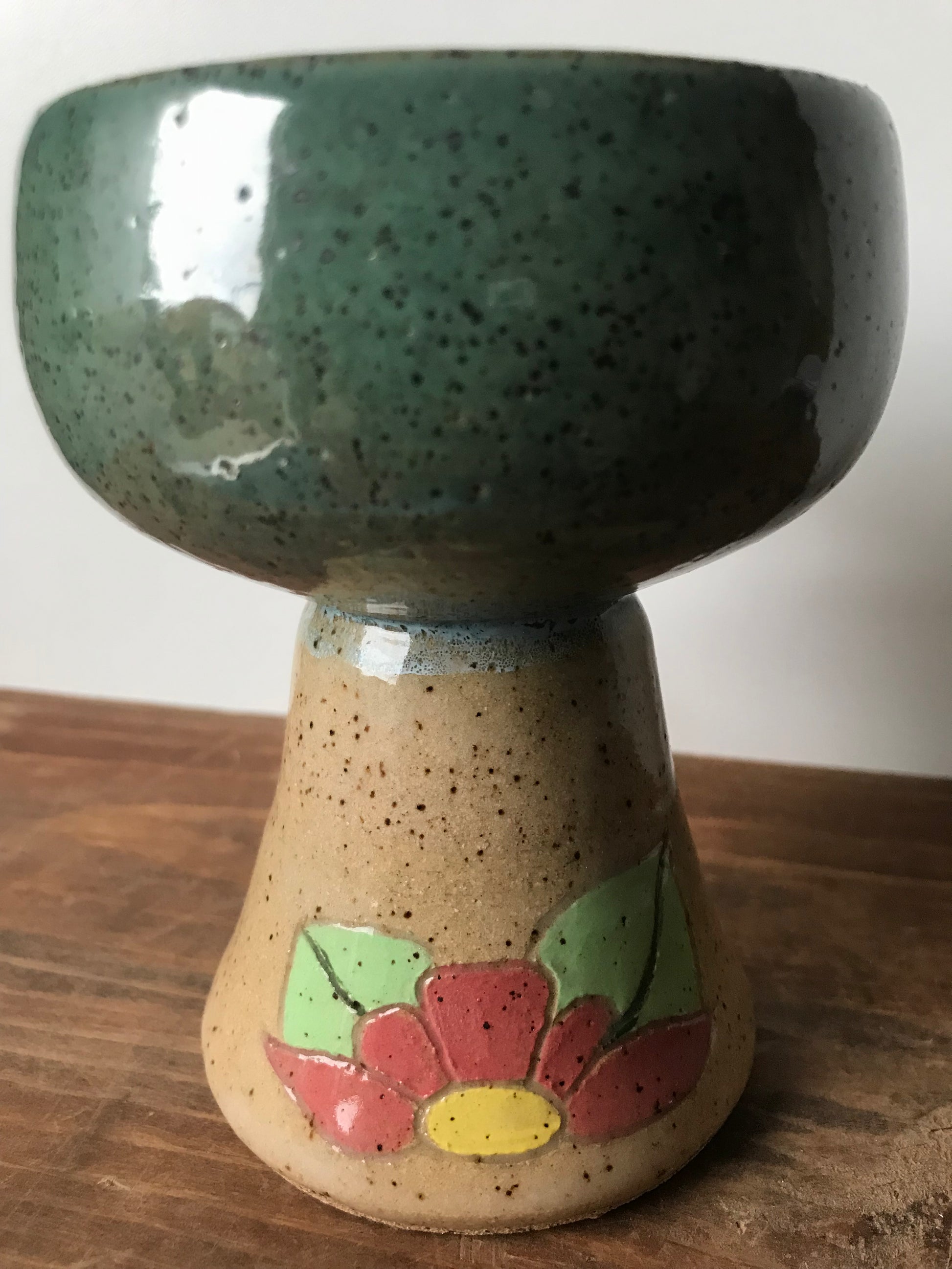 Copalera for ceremonial burning of resins. Light Blue speckled with Red Xochitl Flower