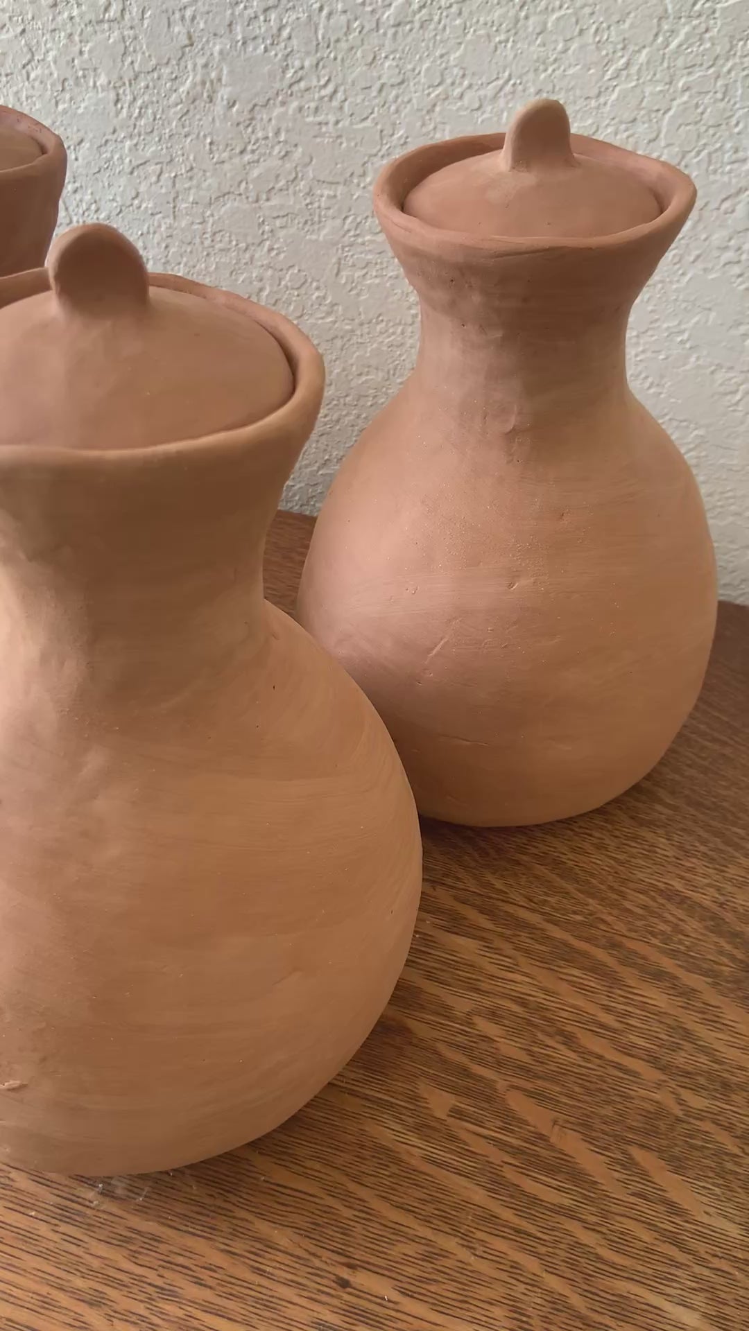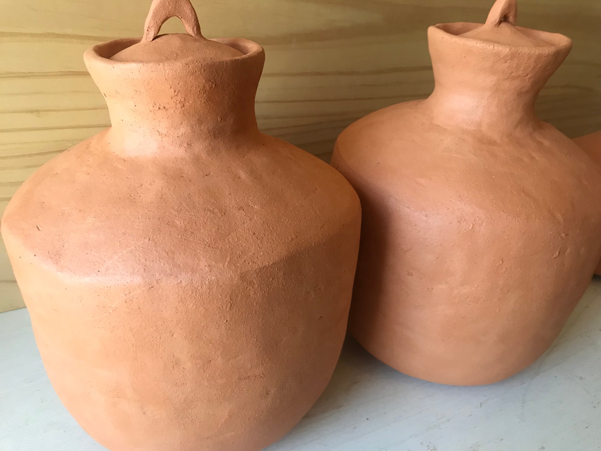 Our ollas are handmade using the coil building method and come with a lid to keep debri out of the vessel.